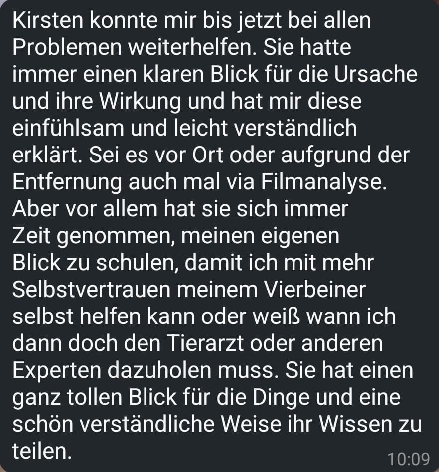 - Zuverlässige Unterstützung: Du hast in den 12 Wochen eine kontinuierliche und individuelle, auf dich und deinen Hund abgestimmte, Betreuung durch mich